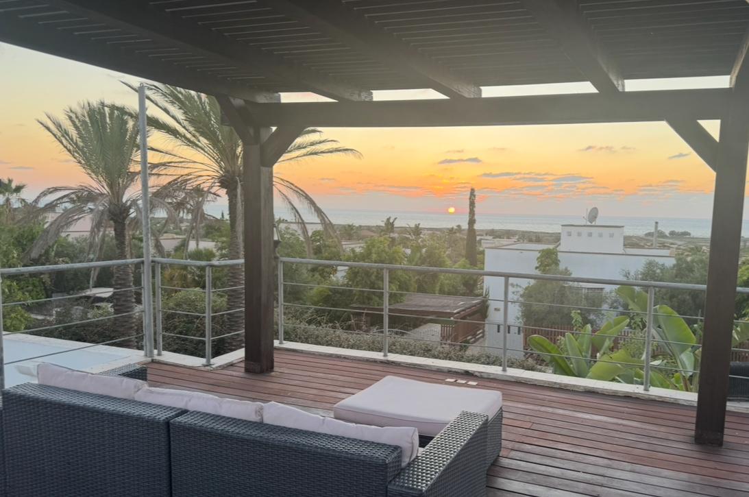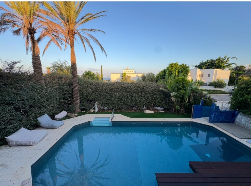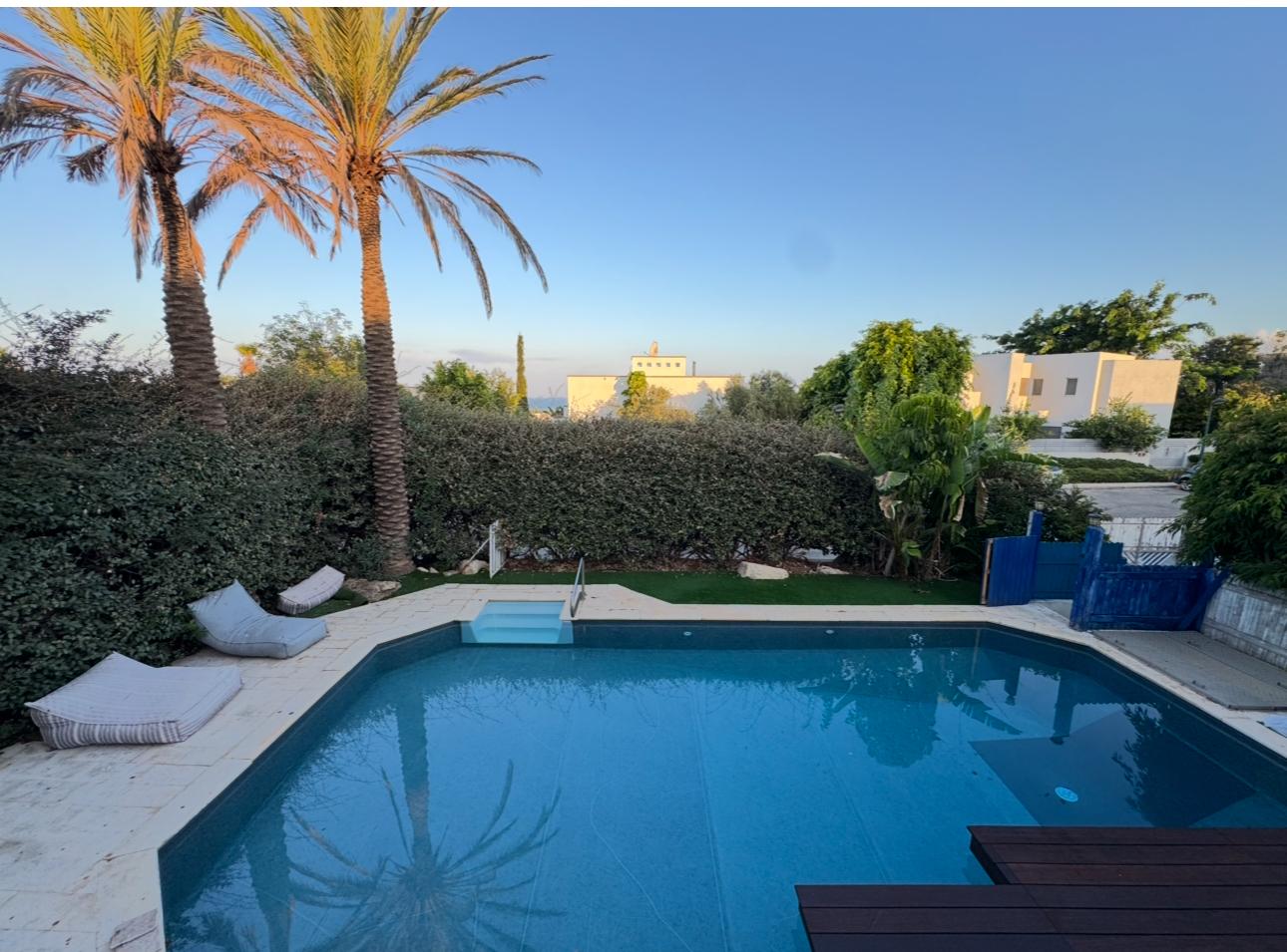 וילה עם 6 חדרי שינה 4 מפלסים , מפלס עליון דק ענק הפונה לים וחדר שינה הורים עם מקלחת ושרותים ,קומה לטה 3 חדרי שינה, מתחת סלון עם מטבח ויציאה לבריכה, קומה מתחת פינת טלויזיה מדרגות המובילות לעוד יחידה עם סלון, חדר שינה עם 2 מיטות זוגיות + 2 יחיד ועוד סלון עם מיטה זוגית, מטבחון מקלחת ושרותים
