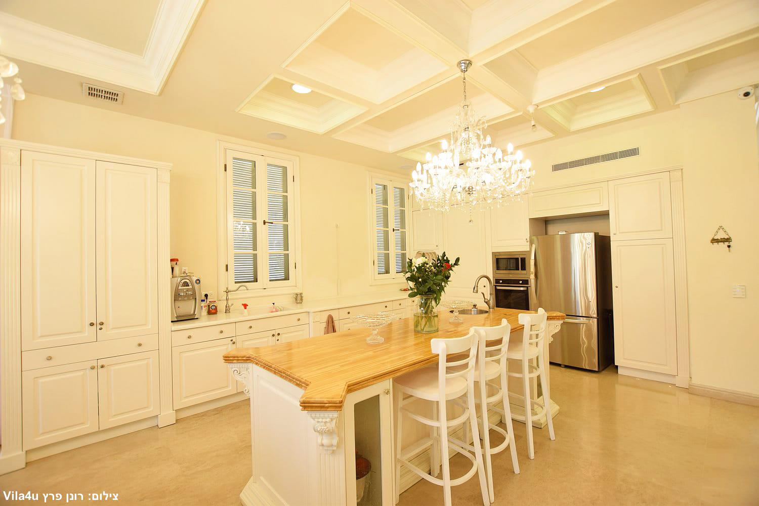וילה מפוארת עד 10 איש.סלון גדול ומרווח, שתי פינות אוכל,מטבח מודרני מצויד קומפלט עם אי באמצע, תנור, מיקרוגל, מכונת קרח, תמי 4, בריכה מגודרת ומחוממת, מיטות שיזוף, פינת מנגל